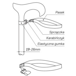 Rozmiar opaski pozwala zainstalować ją na niemal wszystkich laskach dostępnych na rynku, tj. na laskach od średnicy 19 do 26 mm.