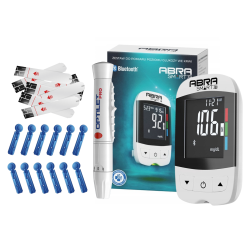 ABRA SMART BT zestaw do pomiaru poziomu glukozy we krwi zawiera: