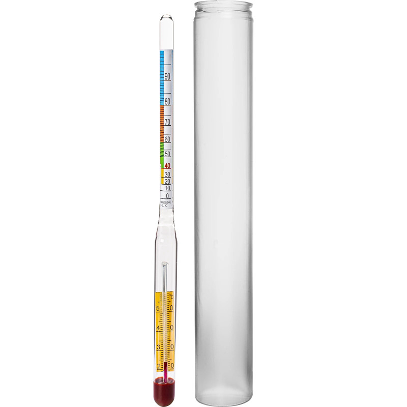 Głównymi elementami miernika są: probówka , pływak z odpowiednio naniesioną skalą od 0 do 95 % objętości alkoholu oraz termometr do badania temperatury cieczy, umieszczony na stałe wewnątrz pływaka. Urządzenia te skalowane są w temperaturze 20 - 21°C.