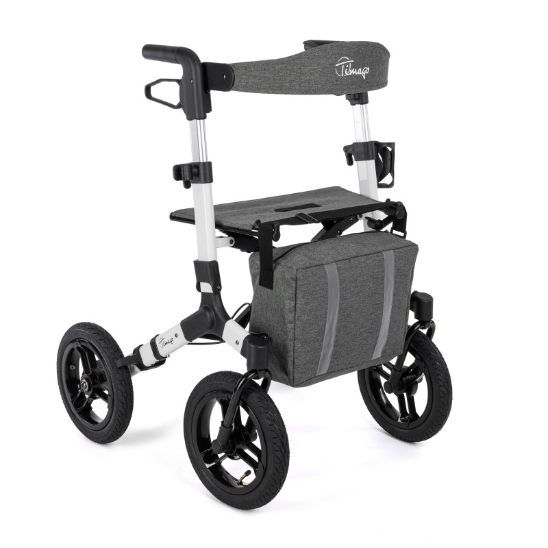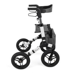 Chodzik, balkonik czterokołowy aluminiowy - RANGER, wykonany z ramy aluminiowej, składany. Posiada duże pompowane koła o średnicy 12’’ oraz regulowane na wysokość rączki zakończone anatomicznymi uchwytami.