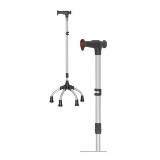 Czwórnóg z uchwytem laski uniwersalnej zapewnia lepszą stabilizację. Przeznaczony dla osób o obniżonej sprawności ruchowej, które potrzebują asekuracji podczas poruszania się. Laska uniwersalna z czteropunktowym podparciem produkcji MIKIRAD umożliwia optymalne dopasowanie wyrobu do indywidualnych potrzeb użytkownika.