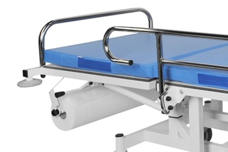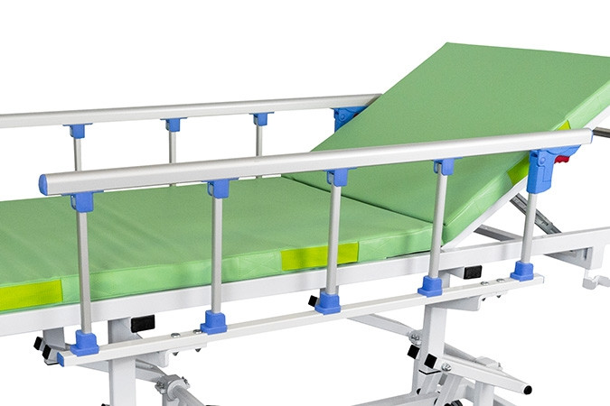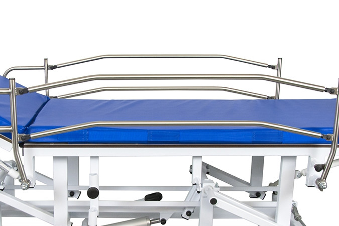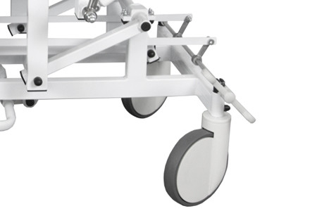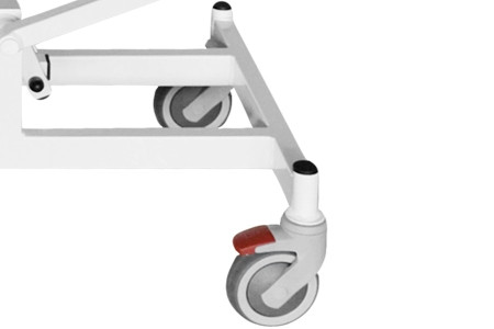 Wózek wykonany jest ze stalowych profili oraz blatu pokrytego tapicerką.