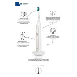 Szczoteczka soniczna SEYSSO Gold White Special Collection, 1 końcówka SEYSSO Anti-Plaque, stacja ładująca, dokumentacja.