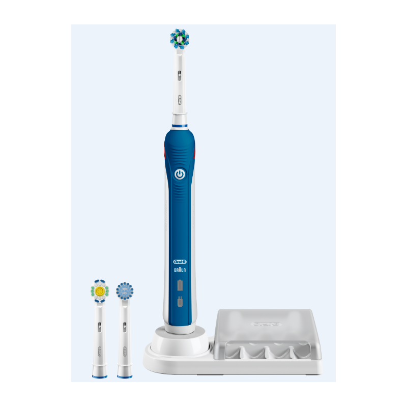 Konstrukcja główki szczoteczki Oral-B PRO 4000 jest inspirowana zaokrąglonym kształtem profesjonalnych narzędzi do czyszczenia zębów. Oscyluje, obraca się i pulsuje, aby usuwać płytkę nazębną i promować zdrowie dziąseł lepiej niż zwykła szczoteczka manualna. Główka szczoteczki otacza każdy ząb, zapewniając dokładne i niesamowite czyszczenie, ząb po zębie.