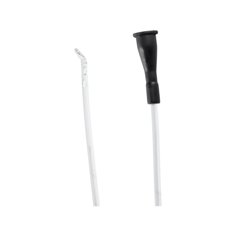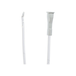 posiada atraumatyczną zaokrągloną końcówkę, dwa boczne otwory o wyoblonych krawędziach i koniec dystalny zakończony stożkowo, zagięty pod kątem 45 stopni,
