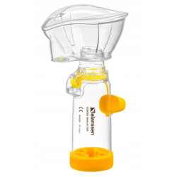 Gwizdek wysokiego przepływu: Gwizdek wysokiego przepływu to edukacyjne narzędzie, które pomaga dzieciom nauczyć się prawidłowego oddechu podczas inhalacji. Kiedy dziecko zbyt gwałtownie dokonuje wdechu, urządzenie emituje krótki dźwięk. Dziecko szybko uczy się w ten sposób, jak prawidłowo wykonywać inhalacje.
