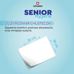 Nawilżane chusteczki Senior Hygienic ułatwią pracę opiekunowi, który w prosty i szybki sposób może zadbać o czystość i komfort swojego podopiecznego.