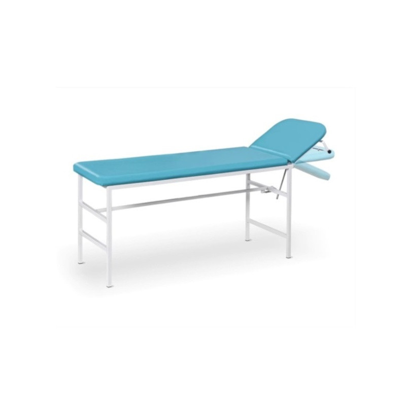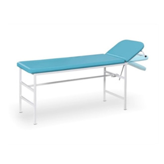 Stalowa konstrukcja kozetki pokryta jest powłoką wykonaną w technologii proszkowej co zapewnia odporność na uszkodzenia mechaniczne, na korozję i estetyczny wygląd. Leże i wezgłowie jest wykonane z wytrzymałej płyty pokrytej tapicerką z pianki poliuretanowj, obitej odpornym tworzywem skóropodobnym umożliwiającym łatwe utrzymanie czystości, w szerokiej gamie kolorystycznej. Wezgłowie z regulowanym kątem pochylenia wposażone jest w uchwyt na podkłady jednorazowe w roli.