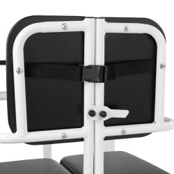 Podczas każdego ruchu możesz czuć się pewnie – SAFE-TRANSFER został wyposażony w pas bezpieczeństwa, stabilne podnóżki oraz kółka z blokadą, które zapobiegają przypadkowemu przesunięciu.