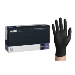 Wysokiej jakości rękawice diagnostyczne wykonane z czarnego nitrylu.