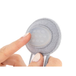 Wewnętrzna poduszeczka posiada silikonowe wypustki wykonujące mikromasaż podczas noszenia, a poliamidowa klamerka i taśma VELCRO ułatwiają regulację siły docisku.