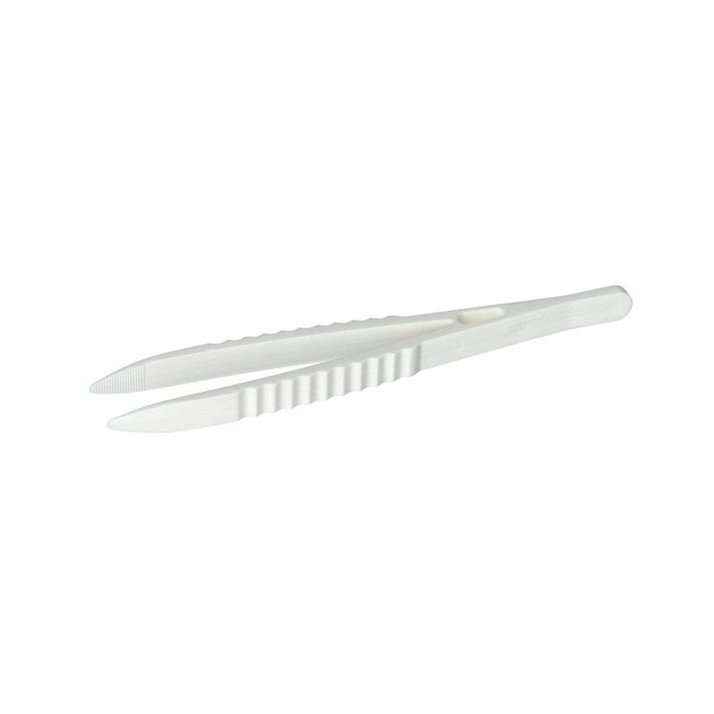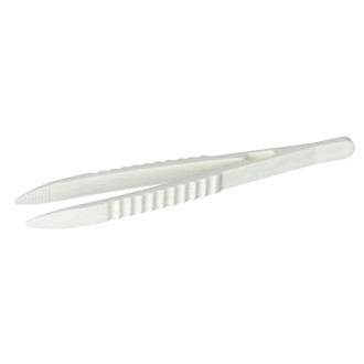 Jednorazowa, sterylna, plastikowa pęseta do chwytania materiałów opatrunkowych.