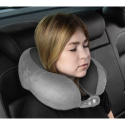 Poduszka ortopedyczna TRAVEL TIM wykonana jest z pianki z pamięcią kształtu, dzięki czemu zapewnia odpowiednie podparcie oraz prawidłową pozycję odcinka szyjnego kręgosłupa i głowy podczas podróży. Poduszka posiada poszewkę z zamkiem błyskawicznym, wykonaną z wysokiej jakości przyjaznej dla skóry tkaniny oraz przednie zapięcie z regulacją obwodu dla wygody użytkowania.