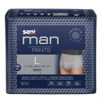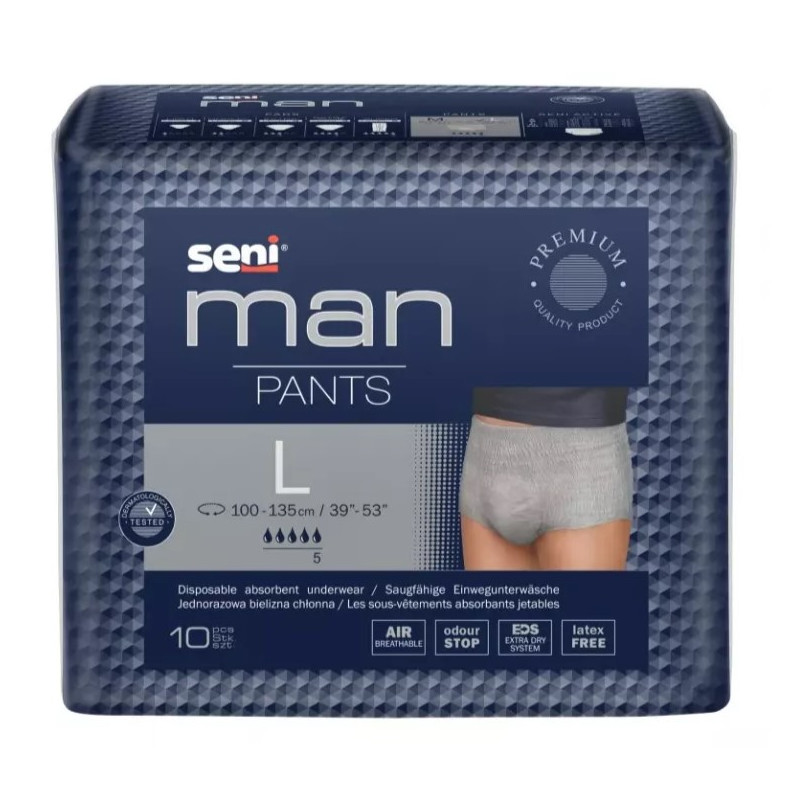 Seni Man Pants to medyczny produkt w postaci chłonnej bielizny przeznaczonej dla mężczyzn z lekkim lub średnim nietrzymaniem moczu.