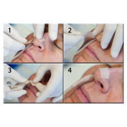 Wykonany z brązowej, elastycznej włókniny do mocowania rurek wprowadzanych do nosa, takich jak: