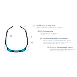 [3] Indywidualna długość zauszników Indywidualnie regulowane na długość zauszniki przyczyniają się do optymalnego i bezuciskowego pasowania na małżowinach usznych i w okolicach skroni.