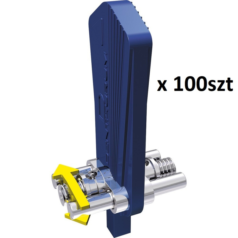 Śruba ze stali szlachetnej do przesuwania zębów w poprzek łuku zębowego, medium. Z prowadnicą. Do przesuwania zębów w poprzek łuku zębowego i dystalizacji w szczęce i żuchwie. Jaskrawożółta strzałka z tworzywa sztucznego. Trzon śruby z poprzecznymi nacięciami , które zapewniają retencję w tworzywie. Ograniczenie po uzyskaniu maksymalnego przesuwu.