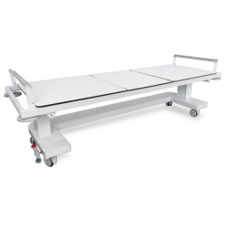 Stół do wykonywania badań diagnostycznych z pracowniach RTG ze stałą wysokością i łamanym blatem. Konstrukcja stołu umożliwia wykorzystanie go również jako wózek do przewozu chorych.