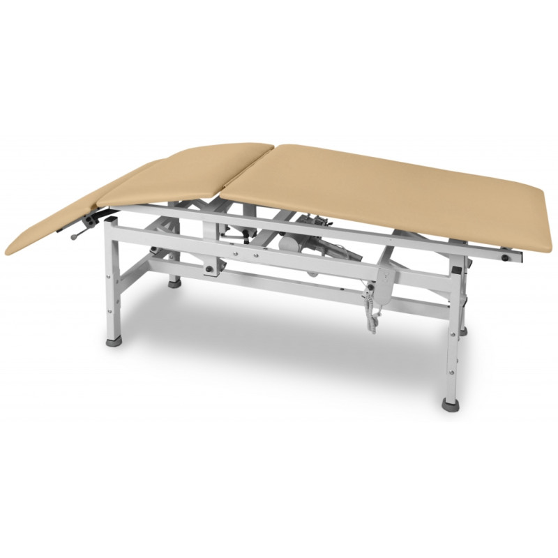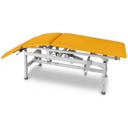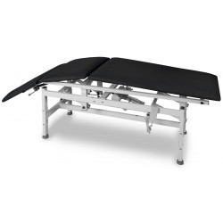 JSR 3 L jest trzyczęściowym modelem stacjonarnego stołu do rehabilitacji z łamaną, środkową częścią leża. Środkowa część blatu regulowana jest w standardzie za pomocą korbki.