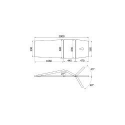 JSR 3 L jest trzyczęściowym modelem stacjonarnego stołu do rehabilitacji z łamaną, środkową częścią leża. Środkowa część blatu regulowana jest w standardzie za pomocą korbki.
