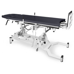 Model COMFORT posiada regulację kąta nachylenia blatu i podgłówka a także regulację wysokości podnóżka. Możliwość elektrycznej regulacji wysokości podnóżka została zaprojektowana z myślą o zabiegach rehabilitacyjnych, dla pacjentów z chorym kręgosłupem, którzy mogą mieć trudności z ułożeniem się na stole.