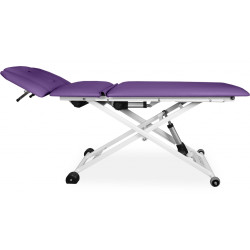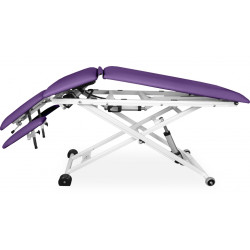 XSR 3 L E jest trzyczęściowym modelem stacjonarnego stołu rehabilitacyjnego, posiada leże umożliwiające uzyskanie pozycji Pivota oraz fotela. Ustawienie stołu do pozycji Pivota, fotela oraz regulacja wysokości stołu odbywa się za pomocą siłownika elektrycznego.