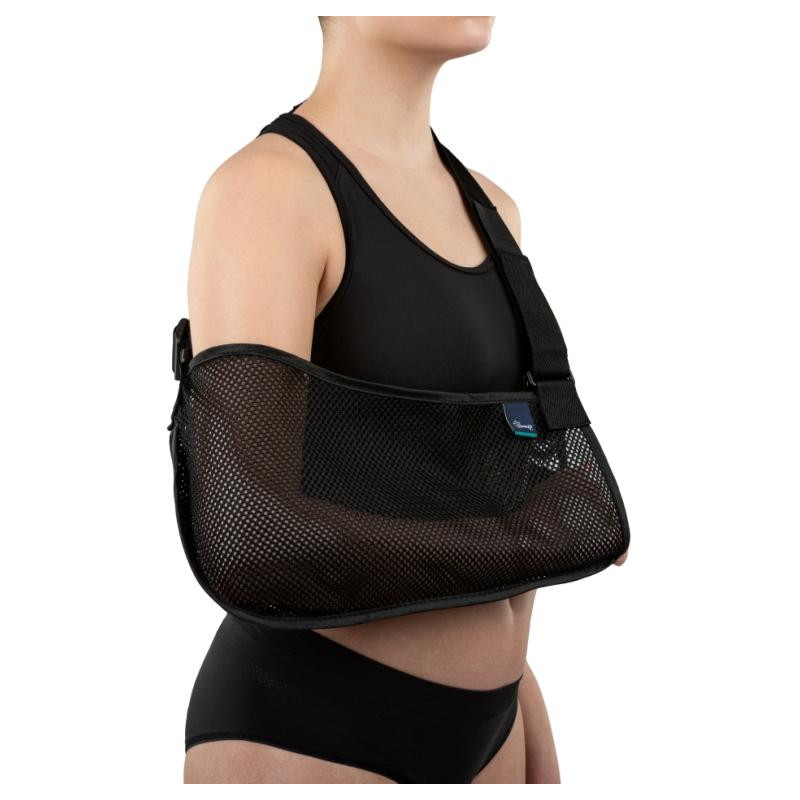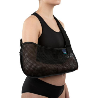 Temblak kończyny górnej wykonany jest z przewiewnego materiału i wyposażony jest w pas piersiowy regulowany za pomocą klamry i rzepa. Pas posiada miękką poduszkę zabezpieczającą szyję przed otarciami i nadmiernym uciskiem.
