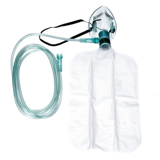 + Rezerwuar tlenu (worek) z zastawką zapobiega dostawaniu się do worka powietrza wydychanego, natomiast zapewnia wdychanie tylko czystego tlenu z worka