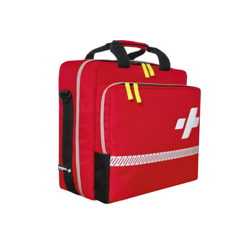 Całość torby uzupełniają elementy odblaskowe, które znacząco poprawiają widoczność ratownika w nocy.