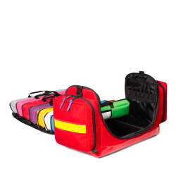 Torba wyposażona jest w 9 odrębnych saszetek do segregacji sprzętu dla różnych grup wiekowych, które są odpinane na rzepy, kodowane kolorami i określają przedziały wiekowe.
