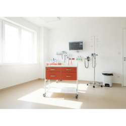 Wózek wielofunkcyjny JUVW przeznaczony jest do przechowywania oraz transportu materiałów oraz urządzeń używanych na oddziałach szpitalnych