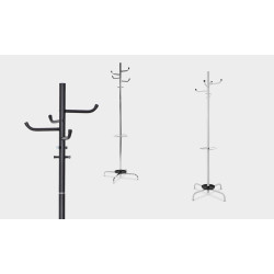 Wieszak Arizona to nowoczesny, lekki wieszak, wykonany z metalu malowanego proszkowo lub o wykończeniu chrom. Wieszak posiada podstawę i pierścień podtrzymujący na parasole. Wieszak jest łatwy w demontażu.