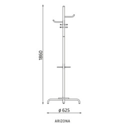 Wieszak Arizona to nowoczesny, lekki wieszak, wykonany z metalu malowanego proszkowo lub o wykończeniu chrom. Wieszak posiada podstawę i pierścień podtrzymujący na parasole. Wieszak jest łatwy w demontażu.