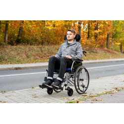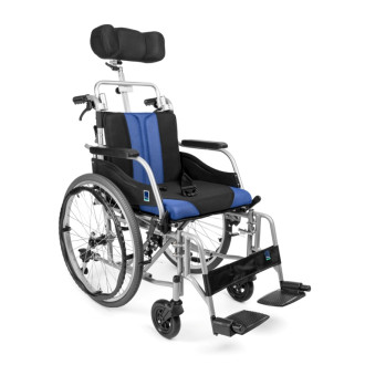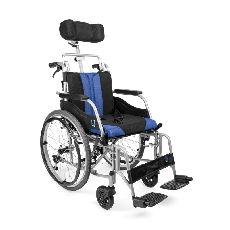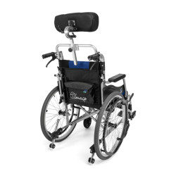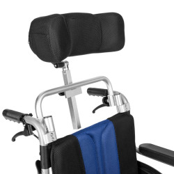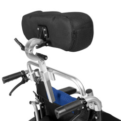 Dodatkowo, ta wersja wózka została wyposażona w demontowalny zagłówek stabilizujący głowę, z regulacją ustawienia położenia w płaszczyźnie pionowej i poziomej, który zapewnia użytkownikowi maksymalnie komfortową pozycję.